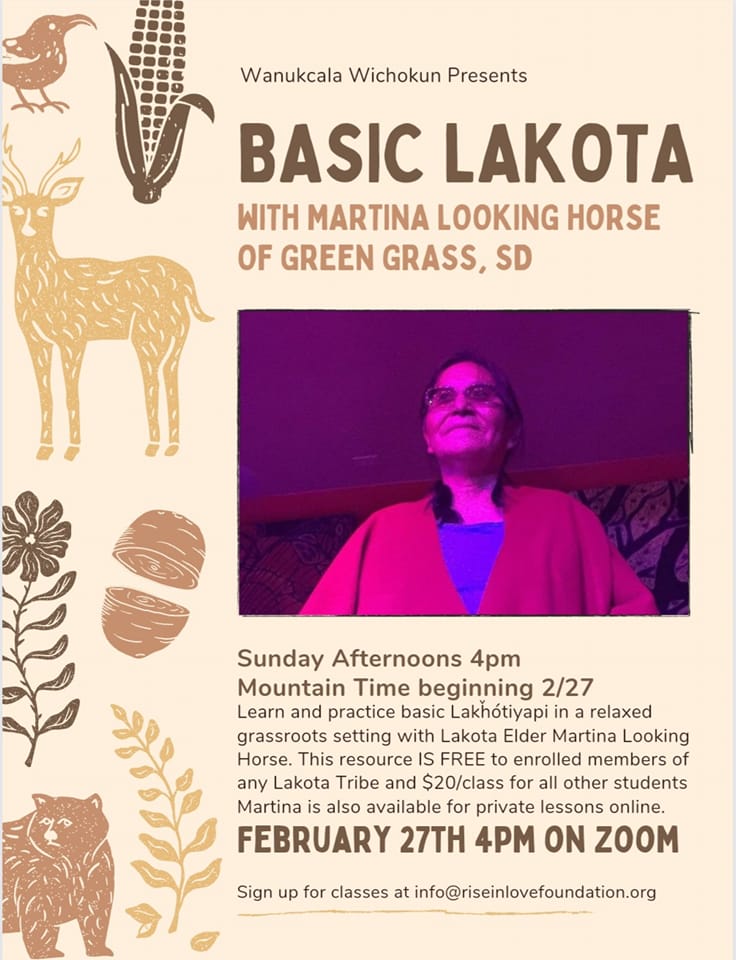 Basic Lakota Language and Culture offered by Martina LookingHorse, Spring 2022.